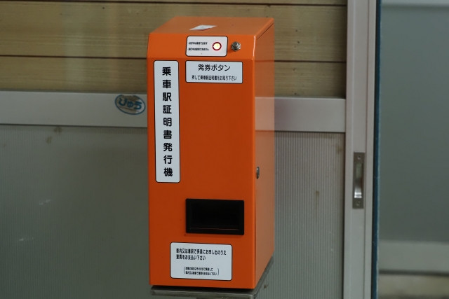 ตู้ออกใบรับรองสถานี ก่อนขึ้นรถไฟคุณต้องดึงตั๋วจากเครื่องนี้ก่อน ที่ตั๋วจะมีหมายเลขให้ และเมื่อตอนลงคุณก็ชำระค่าโดยสารตามที่ได้ระบุไว้ สถานีที่มีผู้โดยสารน้อยบางสถานีมีสิ่งอำนวยความสะดวกอื่น ๆ ตัวอย่างดังแสดงด้านล่าง บางสถานีถือว่าเป็นสถานีที่มีการบริการที่ดีทีเดียว