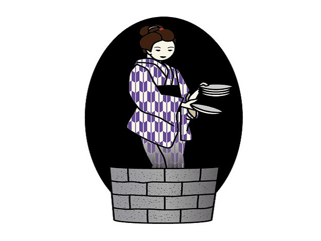 เป็นผีที่โด่งดังที่สุดตนหนึ่งของประเทศญี่ปุ่น เชื่อว่าชาวไทยก็น่าจะเคยได้ยินหรือได้เห็นตามมังงะ คือ ผีตนนี้เป็นวิญญาณของหญิงสาวที่ถูกฆ่า แล้วกลางดึกก็จะออกมานับจานซึ่งนับยังไงก็ได้แค่ 9 ใบ จริงๆคือมีจาน 10 ใบแต่ทำแตก วิญญาณก็เลยไม่สงบ แล้วก็จะส่งเสียงโหยหวนหลอกผู้คน ให้ได้ยินกันเป็นประจำ โดยผีนับจานนี้ว่ากันว่ามีมาตั้งแต่สมัยเอโดะเลยทีเดียว ผีนับจานนั้น อันที่จริงมีหลากหลายพื้นที่ในญี่ปุ่นและแต่ละเรื่องเล่าก็มักจะมีสิ่งที่เกี่ยวข้องกับท้องถิ่นนั้น แต่โดยทั่วไปก็จะเป็นเรื่องที่เกี่ยวข้องกับตัวละครหลักๆคือ สาวใช้ ซามูไร หรือตัวโกง แล้วฉากของเรื่องราวมักเป็นปราสาทหรือบ้านขุนนางที่ร่ำรวย และมักกล่าวถึงบ่อน้ำที่วิญญาณออกมาปรากฏตัวให้เห็น