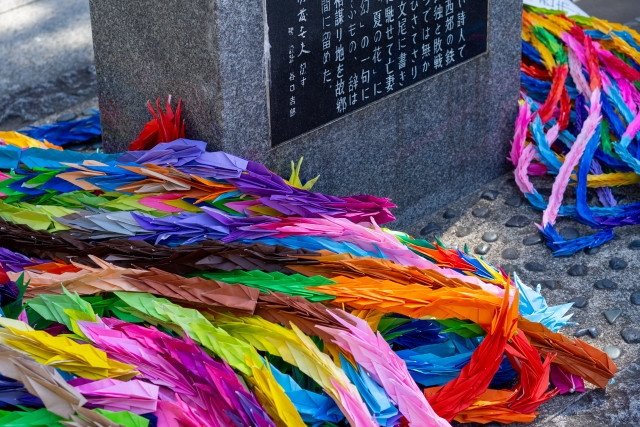 เรื่องราวที่เกิดขึ้นที่ฮิโรชิม่าในช่วงสงครามโลกครั้งที่ 2 เป็นเรื่องราวที่สะเทือนใจ และการพับนกกระเรียนพันตัวที่นี่ ก็เพื่ออธิษฐานขอพรให้ไม่ให้เกิดเหตุการณ์น่าเศร้าแบบนี้อีก หลายคนก็ให้นกกระเรียนพันตัวเป็นเครื่องรางเพื่อขอพรในเรื่องอื่นๆอีกด้วย