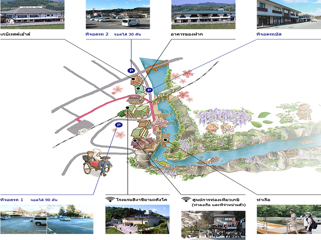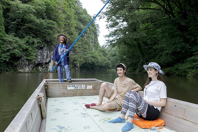 เกบิเคในฤดูร้อน ผู้มาเที่ยวจะได้ล่องเรือชม สีเขียวขจีของต้นไม้กับโขดหินผาและน้ำใส สะอาดมองเห็นปลาในแม่น้ำกำลังแหวกว่าย มีเป็ดว่ายตามเรือ คุณสามารถซื้ออาหารเม็ดให้กับปลาและเป็ดได้ที่ร้านค้าด้านบนก่อนลงเรือ ในราคาร้อยเยนเท่านั้น อากาศค่อนข้างร้อนแนะนำให้ใส่หมวกพกร่มไปด้วยนะ