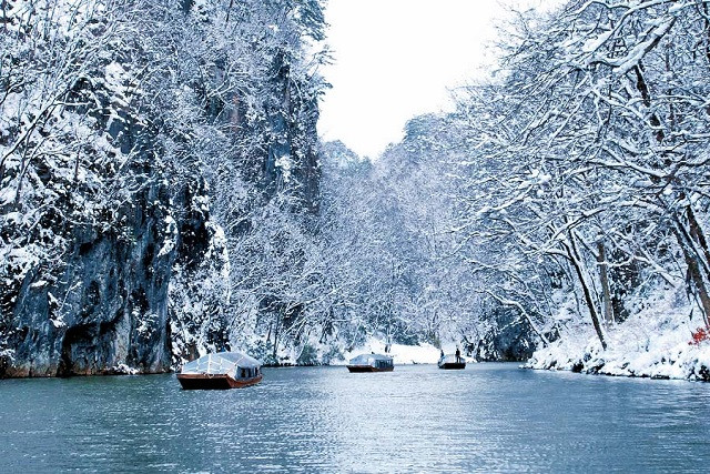 ในช่วงฤดูหนาวเดือนที่หิมะตกจะมีบริการล่องเรือที่เรียกว่า โคทัตสึ (โต๊ะที่ให้ความอบอุ่น) จึงเหมาะอย่างยิ่งหากต้องการสัมผัสอากาศหนาวเย็น และยังมีโอกาสได้ลิ้มรสหม้อไฟคินากาชินาเบะเสิร์ฟร้อนๆ บนเรือ โลกสีขาวโพลนที่มองเห็นได้จากเรือในโคทัตสึอันอบอุ่นนั้นเหมือนกับภาพวาด ไม่ต้องสงสัยเลยว่าคุณจะต้องประทับใจกับทิวทัศน์ที่ปกติแล้วคุณไม่ได้สัมผัสอย่างแน่นอน