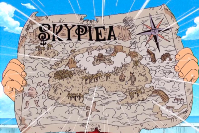 島 (Shima) แปลว่า เกาะ โดยในเรื่องวันพีซนั้นมีเกาะอยู่มากมาก โดยหมู่เกาะในวันพีซมีหมู่เกาะคาบอนดี้ มีทั้งหมด 79 เกาะ หมู่เกาะท็อตโตะแลนด์ มีทั้งหมด 35 เกาะ รวมทั้งสิ้น 181 เกาะและการเดินทางไปแต่ละเกาะนั้นต้องใช้ล็อกโพสซึ่งเป็นอุปกรณ์นำทางในทะเลคล้ายกับเข็มทิศในการนำทาง ในรูปคือเกาะ Skypiea (สกายเปีย) ซึ่งเป็นเกาะที่สูงบนท้องฟ้า