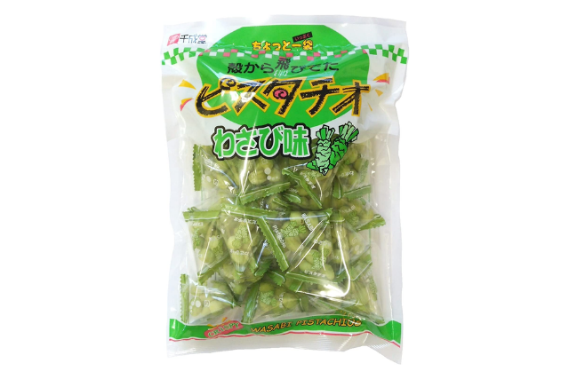 ถั่วพิสตาชิโอ้อบกรอบ เคลือบด้วยวาซาบิที่คนไทยมาต้องซื้อกลับ ภายในถุงแบ่งเป็นซองเล็กๆเหมาะกับการซื้อไปเป็นของฝากให้แจกกันง่ายๆอีกด้วย