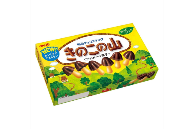 ช็อกโกแลตที่ทำเป็นรูปน้องเห็ดน้อย ตัวก้านเป็นคุ้กกี้บิสกิตกรุบกรอบ ด้านบนเป็นช็อกโกแลตรสชาติละมุน ทั้งอร่อยและน่ารัก มักจะมีรสชาติแปลกๆออกมาตามเทศกาลอีกด้วย