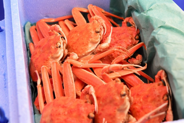 ปูอีกหนึ่งในอาหารขึ้นชื่อของคานาซาวะ ปูเป็นอาหารทะเลที่เป็นตัวแทนของคานาซาวะ ไม่ว่าจะอบ ต้ม หรือซาซิมิก็อร่อยมาก ปูส่วนใหญ่ในคานาซาวะเรียกว่า "ズワイガニ" หรือปูหิมะ โดยตัวผู้จะเรียกว่า "加能ガニ" (Kanō-gani) ซึ่งจะมีก้ามใหญ่และเนื้อแน่น และตัวเมียจะเรียกว่า "香箱ガニ" (Kōbako-gani) มีรสชาติเข้มข้นของไข่ปู คุณสามารถเพลิดเพลินกับรสชาติที่แตกต่างกัน!! ในทุกปีจะมีการประมูลปูหิมะในช่วงต้นฤดู ซึ่งในปีนี้ถูกประมูลไปในราคา 5 ล้านเยนในการประมูลครั้งแรกในวันที่ 6 พฤศจิกายน 2021และได้เสิร์ฟให้กับแขกวีไอพีที่ออนเซ็นเรียวกังในคานาซาวะในคืนวันที่ 7 พฤศจิกายน 2021
