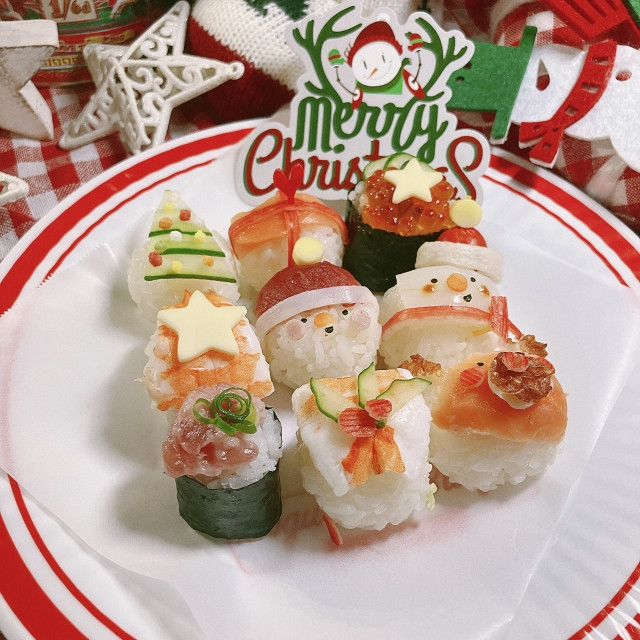 Bên cạnh những món ăn trên, người Nhật cũng ưa chuộng các món ăn truyền thống như sushi, salad khoai tây được trang trí cùng các hình thù ngộ nghĩnh trong đợt Giáng Sinh.