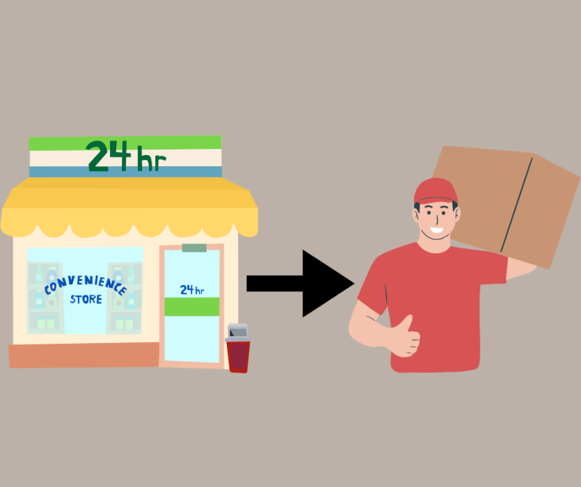 Mang hàng hóa của bạn đến một cửa hàng tiện lợi (combini) cung cấp dịch vụ giao hàng Takkyubin (nó sẽ được biểu thị bằng biểu tượng của một con mèo đen ở lối vào cửa hàng).