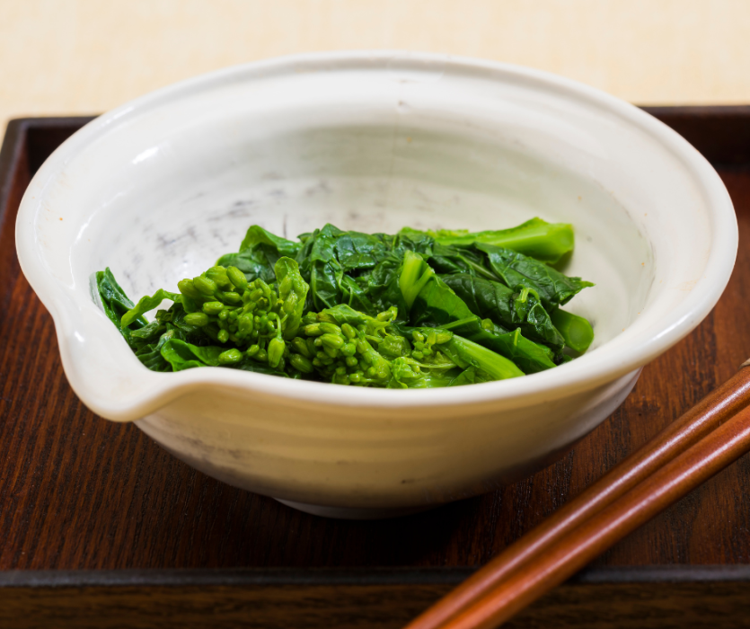 「菜の花のからし和え - Nano hana no karashi ae」là một món ăn truyền thống của Nhật Bản, được làm từ hoa cải tẩm với nước tương và mù tạt. Món ăn này thường được ăn vào mùa xuân, khi hoa cải nở rộ. Hoa cải có vị đắng nhẹ, kết hợp với vị cay của mù tạt tạo nên một hương vị rất đặc biệt. Món ăn này rất dễ làm khi chỉ cần luộc cải hoa và trộn với nước tương và mù tạt.