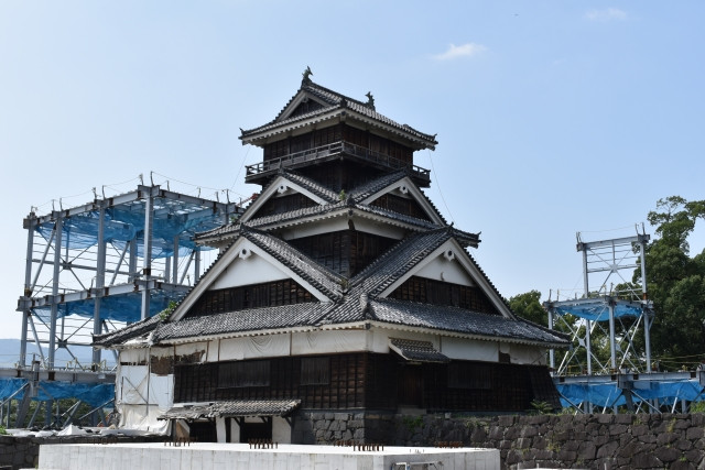 Tuy nhiên vào những năm 1998-2008, với sự giúp đỡ của các nhà sử học, thành phố Kumamoto đã đầu tư kinh phí để trùng tu vào tòa lâu đài mang tính biểu tượng này. Mặc dù bị phá hủy nghiêm trọng bởi trận động đất Kumamoto năm 2016 nhưng với sự ủng hộ từ những người yêu mến, tòa tháp lâu đài Kumamoto đã dần được khôi phục và mở cửa tiếp đón các du khách tham quan.
