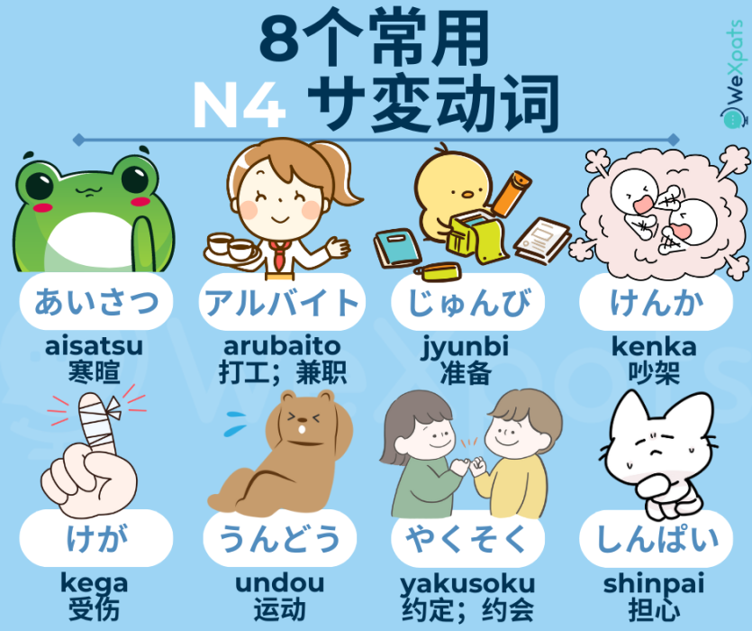 学完了N5等级的基本动词以及不同形式的变化规则,接下来就要进阶N4啦!这里奉上小编为大家精心挑选的225个N4必学动词!让我们一举拿下N4吧!