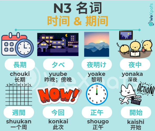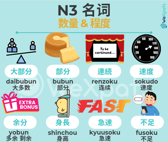 在N3名词清单第三弹,我们将学习与“数量、程度” 、“时间、期间”、“感觉、情况”相关的名词,承接N3名词第二弹,作为N3名词清单的最后一章,在文章末还有例题进行测试与巩固,来检查一下自己的掌握情况吧!