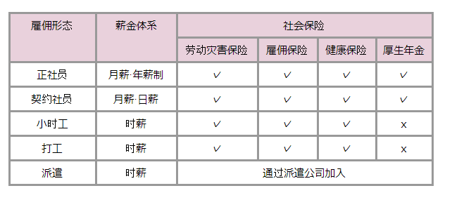 “雇佣形态”有正社员、契约社员、小时工、打工、派遣各种形式。