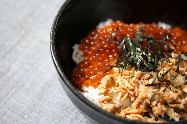 ·海鲜盖饭。是北海道最负盛名的小吃,海鲜种类很丰富,肥美又可口,有鲔鱼、螃蟹、鲑鱼、鲑鱼子、海胆、虾子、 扇贝…等,可自由搭配。