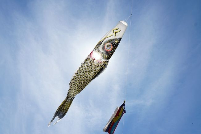 五月五日是日本“端午节”,也是儿童节,与三月三日的女儿节不同的是,这是属于小男孩儿的节日,是为了祈求男孩能够健康成长的日子。日本人认为鲤鱼是好运、力量和勇气的象征,表达了父母期望子孙成为勇敢坚强的武士的愿望,为了祈祷上天照看好自己的孩子,所以立起鲤鱼旗以引起上天的注意。有男孩的家庭会在院子挂上鲤鱼旗(こいのぼり)。而那些没有院子的家庭则会在家里装饰一些小型鲤鱼旗。