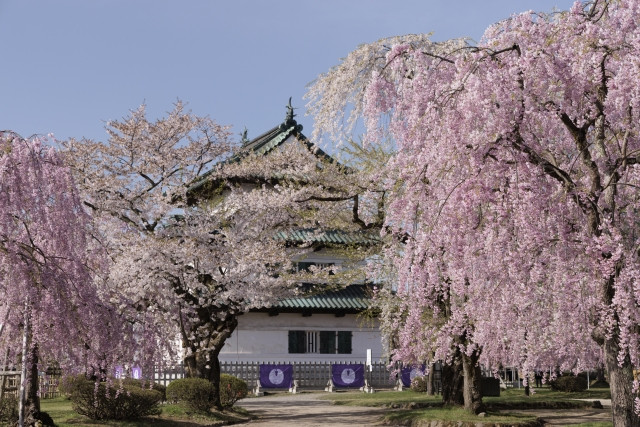 城堡周圍種植了很多以染井吉野為中心的櫻花樹,在春天是很受歡迎的賞花景點,花瓣鋪滿在弘前城周圍的水路,是難得一見的絕景。