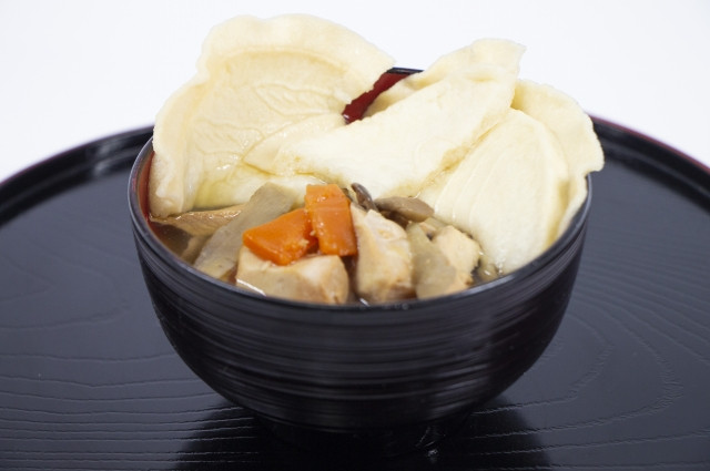 仙貝湯汁(せんべい汁)是把葱、牛蒡、蘑菇等放入用雞肉和豬肉做成的醬油湯頭中,和南部仙貝一起煮的料理。這是青森縣八戶市的鄉土料理,主要在家庭內製作,但近年在很多餐廳都可吃到。仙貝是以米為原料的點心,原本有著脆脆口感,但是和湯一起煮的話會變成年糕那樣軟軟的口感。這是在其他地區很少能吃到的名產美食,所以去青森縣的時候請一定要嘗嘗。