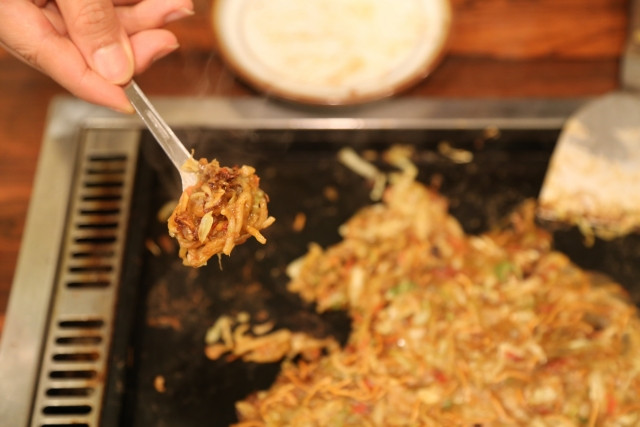 文字燒是東京都有名的美食鐵板料理,把蔬菜、海鮮、肉等喜歡的食材與以水溶解的小麥粉混合,再用鐵板煎烤,用鏟子一點一點舀起來吃。作為平民的味道,自古以來就很受歡迎,在東京都月島可以找到很多文字燒店。
