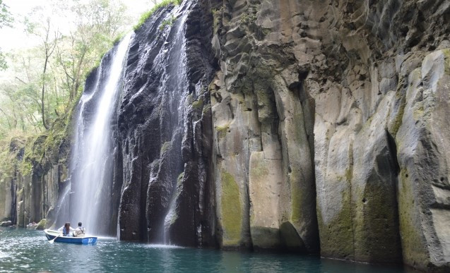 代表宮崎縣的觀光地「高千穗峽」作為神話的舞台而聞名,特別有名的是「真名井瀑布」,能感受到神秘氣氛和景色。在這裡可以乘船接近瀑布,夏天去的話可以一邊感受凉爽一邊享受觀光。