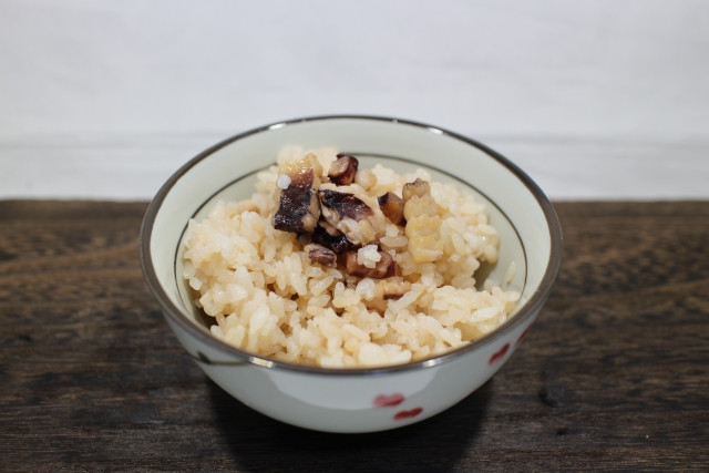 岡山縣有著日本國內屈指可數的章魚捕漁量,而其特有的鄉土料理章魚飯就是把章魚與米以高湯煮成蒸飯,據說最初是漁夫在船上做的料理,後來慢慢流傳成當地美食。 岡山縣捕獲的章魚生長在瀨戶內海水流很快的大海中,身體相對僵硬,所以有强烈的嚼勁。章魚飯雖然只用簡單的食材製作,卻能直接享受章魚的鮮味。