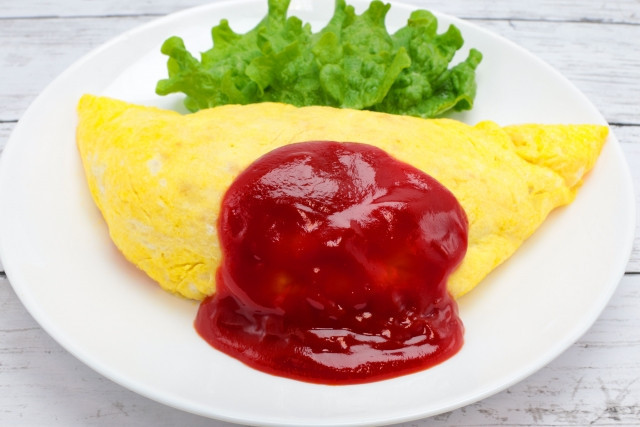 蛋包飯是以雞蛋包著番茄醬雞肉炒飯,外面再塗著番茄醬。而且有不同的雞蛋製作方法,有些已經完全煮熟的蛋皮,有些則是半熟的炒蛋,還有一種是在飯上放半生熟歐姆蛋,然後切開,讓滑嫩的雞蛋像瀑布一樣傾瀉在米飯周圍。