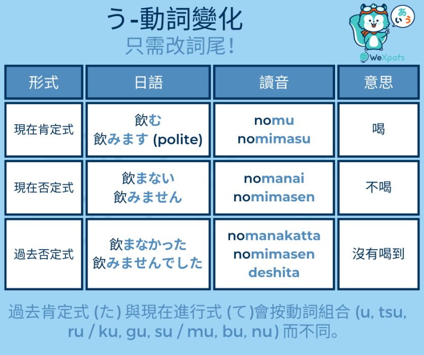 う動詞(u-doushi)- 以「う」(u)結尾的動詞