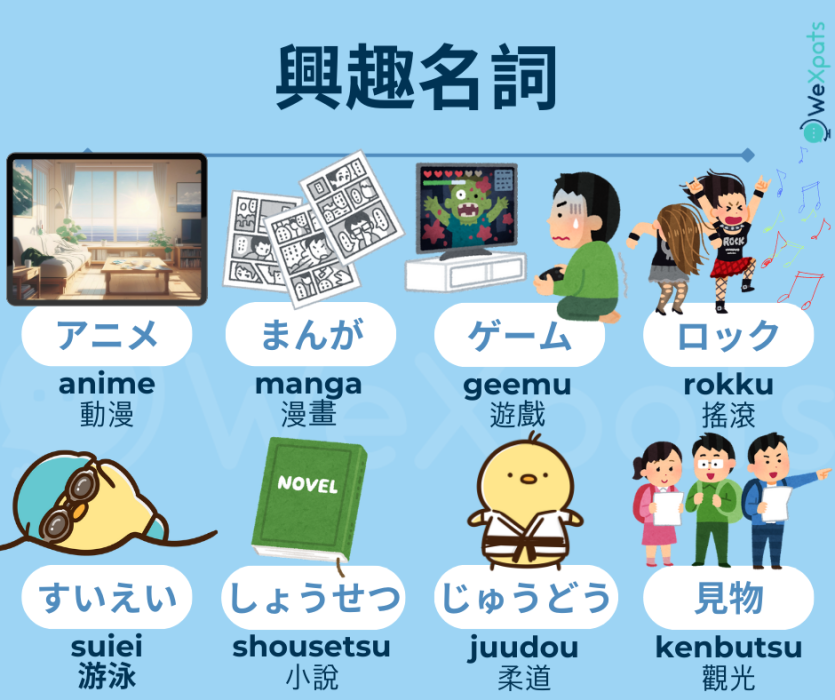 嗜好與興趣:進一步介紹嗜好和興趣的詞彙。