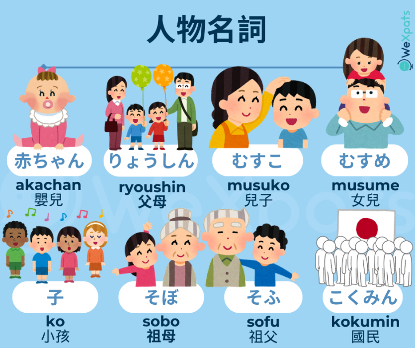 這些名詞與「人物」相關,在介紹家庭成員或詢問家庭結構時常用。