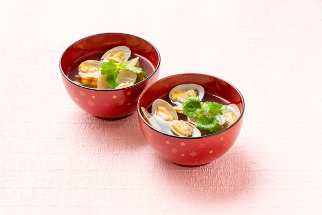 作為雙殼貝類的蛤蜊,兩個貝殼可完美契合,不會留下一些空隙,因此象徵著一對夫婦能夠相互輔助、共同生活。透過喝蛤蜊湯祈願未來幸福,孩子能找到好的伴侶能夠一生相伴。