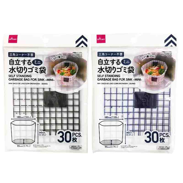 很多日本人使用洗碗槽三角架,在架上套網子過濾廚餘,以免廚餘阻塞廚房水槽。雖然這樣已經很方便,但還是要定期清潔三角架,那麼可使用這個自立式垃圾袋。