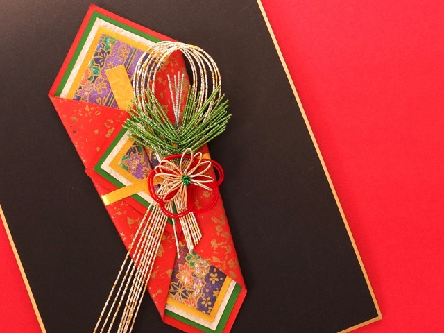水引是用來綁住用奉書紙包裝的禮物的材料。在過去,贈送者會親自包裹紙張或綁上水引。水引不僅用於固定包裝,還具有通過結繩的方式表達贈送者心意的功能。不過現在多數使用印刷方式來表現水引。