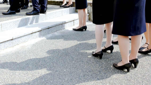 鞋子方面,可以穿高跟鞋、平底鞋及牛津鞋,冬天則可穿短靴子,但避免穿太高的鞋跟,因為走路時會發出聲音,會影響他人。有些公司更會明確要求穿襪子或絲襪,即使夏天都可能需要穿上肉色絲襪,露出肌膚會被示為不禮貌。