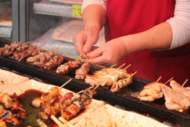 串燒的日語是「焼き鳥」(yakitori),而「鳥」就是雞的意思,所以在日本的串燒店大部分提供的都是雞肉,與少許豬肉、牛肉或蔬菜選擇。而且點菜時,店員通常會問你要燒烤醬汁「たれ」(tare)或是鹽「塩」(sio)調味,你可以按個人喜好每一串搭配不同味道,但如果你一頭霧水,那就說「お任せ」(omakase),交給店家為你進行最推薦的調味吧!