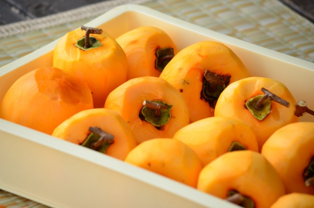 走在日本鄉間,會看到一片橘色的柿子串,就是秋天獨有的風景。日本人會在秋季吃甜柿子,果肉細膩,甜度極高。而澀柿子就會拿去曬成果乾,澀柿子在曬乾後會去除澀味,更加香甜。而柿乾就可以用來製作和菓子,像是柿羊羹、柿大福。
