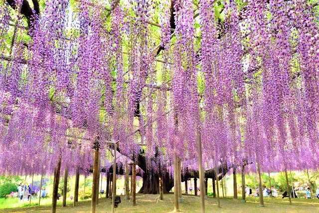 雖然是充滿驚險的劇情,但滿滿紫藤花的場景真的很美,而足利花卉公園就是有名的紫藤花景點, 那裡有由350株白藤組成、長達80公尺的藤棚,在4-5月份期間一片紫色花海,夢幻又浪漫,讓你可以感受到被紫藤花包圍的感覺。非常期間限定的場景,千萬不要錯過!