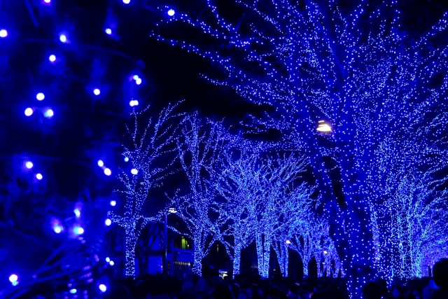 青之洞窟在澀谷公園通至代代木公園通舉行,從熱鬧的澀谷市區慢慢走到代代木公園,會看著景色由繁忙的人潮及林林總總的店鋪轉換成一片迷人的藍色燈海。用上60萬個LED燈泡去裝飾,把公園染上一片神秘而明亮的藍色,真的很夢幻。如果你夠腳力,還可走到原宿去看表參道的燈飾,把澀谷的冬天美景盡收眼底。