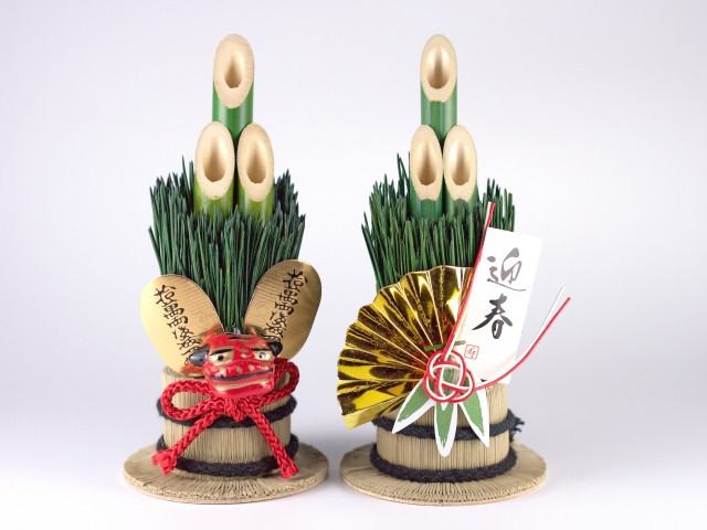 門松是用來裝飾門前的擺設,以松或竹製成,在12月28日至1月7日期間在門前放上一對,左邊的是雄松,而右邊的是雌松。古時人們相信神靈是居住在樹木上,所以放門松可以迎接年神的到來,而且松樹也被認為有生命力、長生不老和繁榮,很有彩頭。