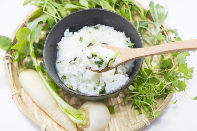 七草粥通常是在1月7日,也就是類似我們農曆的「人日」中品嘗,不過有些地方如青森縣、秋田縣、新潟縣等某些市鎮會改在1月15日或2月7日進行。吃七草粥的原意是讓在新年期間吃太多美食的人可以吃清淡一點緩和腸胃,籍此再祈求一年的健康。而七草粥顧名思義會用七種食材來煮粥,包括芹菜、薺菜、鼠麴草、蘩蔞、寶蓋草、蕪菁、白蘿蔔,按地區也會有些不同。在快到1月7日時於超市常常會看到七草套裝方便人們買來煮粥,在一些日本餐廳也可能吃到。在新年每天大啖美食的人不妨這天吃點粥吧!