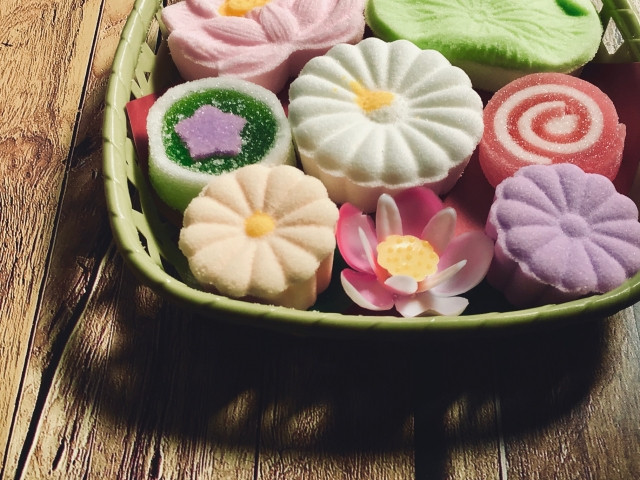 落雁有一個很有詩意的名字,這是一種把米乾燥成粉狀,再加入水及糖,然後乾燥成點心。入口有淡淡的甜味,能享受在口中慢慢化開的口感,加上它有不同形狀及顏色,如花型、動物等,十分好看,用來送禮也很適合。