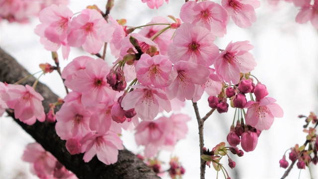 河津櫻為最早綻放的櫻花,通常在2月-3月就會綻放,而且花期可長達1個月,比其他品種都要長久。河津櫻的外觀也有明顯特徵,花蕊比染井吉野櫻較大,顏色也比較鮮艷一點。在1955年,這個品種在靜岡縣賀茂郡河津町被偶然發現,所以命名為河津櫻。想要賞河津櫻除了前往靜岡縣,其實在神奈川縣的三浦海岸、愛知縣、山口縣等地都可以找到美麗的河津櫻。