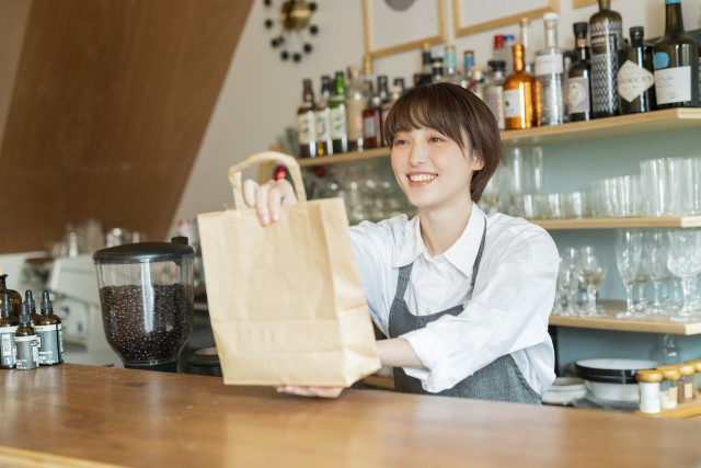如果是自己到櫃台點餐的快餐形式,對方可能會問你是在店內享用或是外帶「店内でお召し上がりですか?お持ち帰りですか?」(tennaide omeshiagaridesuka? omochikaeridesuka?)。在店內享用的話則讓你帶著號碼牌在桌子等候「こちらの番号札をお持ちになって、お席でお待ちください」(kochirano bangofuta wo omochininatte, osekideomachikudasai)。外帶的話則會讓你在一邊等,做好料理會叫你的號碼「できましたら、番号をお呼び致します」(dekimashitara, bangowo oyobiitashimasu),也會問你要不要筷子/飲管等餐具「お箸/ストローはご利用になりますか?」(ohashi / sutoroo wa goriyouninarimasuka)。點完就到下一位客人「次のお客様、どうぞ」(tsugino okyasama, douzo)。