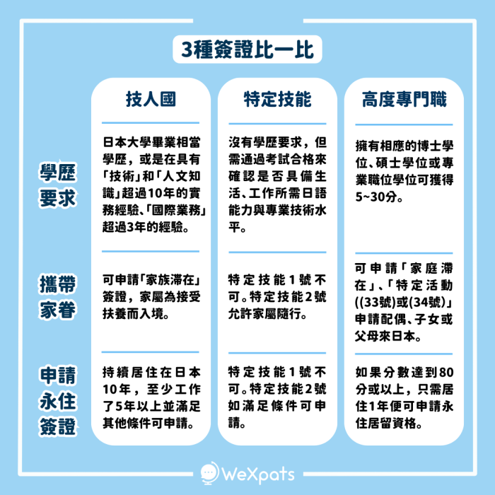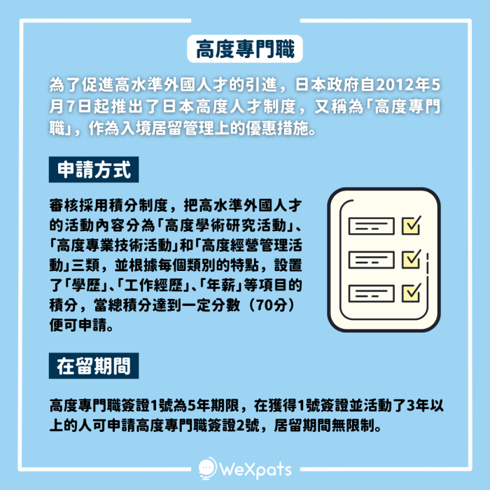 延伸閱讀 : 日本高度人才制度是什麼?2024年最新「高度專門職」簽證計分方法、在留資格內容、申請方法整理