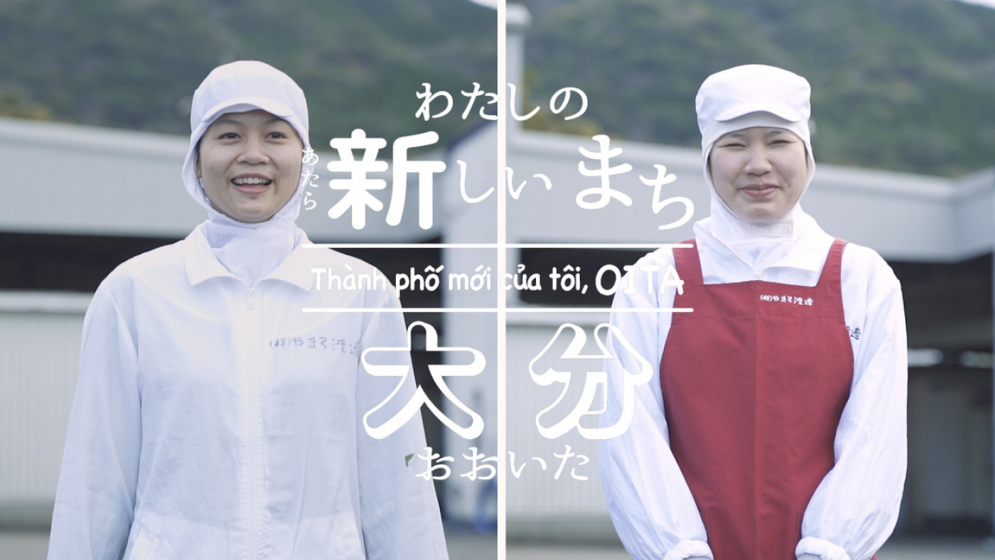 這次為了展現在大分縣工作的魅力,請來了兩位越南技能實習生Nguyen Thi Thuy (トゥイ)及Hoang Thi Hoai (ホアイ)參加了「大分縣的魅力傳遞影片」的拍攝,訪問了她們從來日本的契機,到大分縣的魅力、攝影後的想法等等。