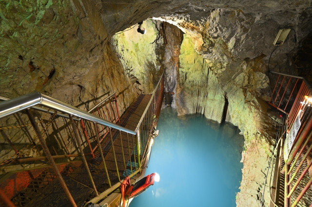 稻積水下鐘乳洞是可以看到夢幻景象的觀光景點。原本在3億年前古生代形成的鐘乳洞因為30萬年前阿蘇火山大噴發而被水淹沒,因此現在可以看到水中鐘乳石、珊瑚石、海克利泰等。 從洞窟內到連接著約150米的河川,是日本最長的水中鐘乳洞。如果提前預約的話還可以在那裡享受潜水。